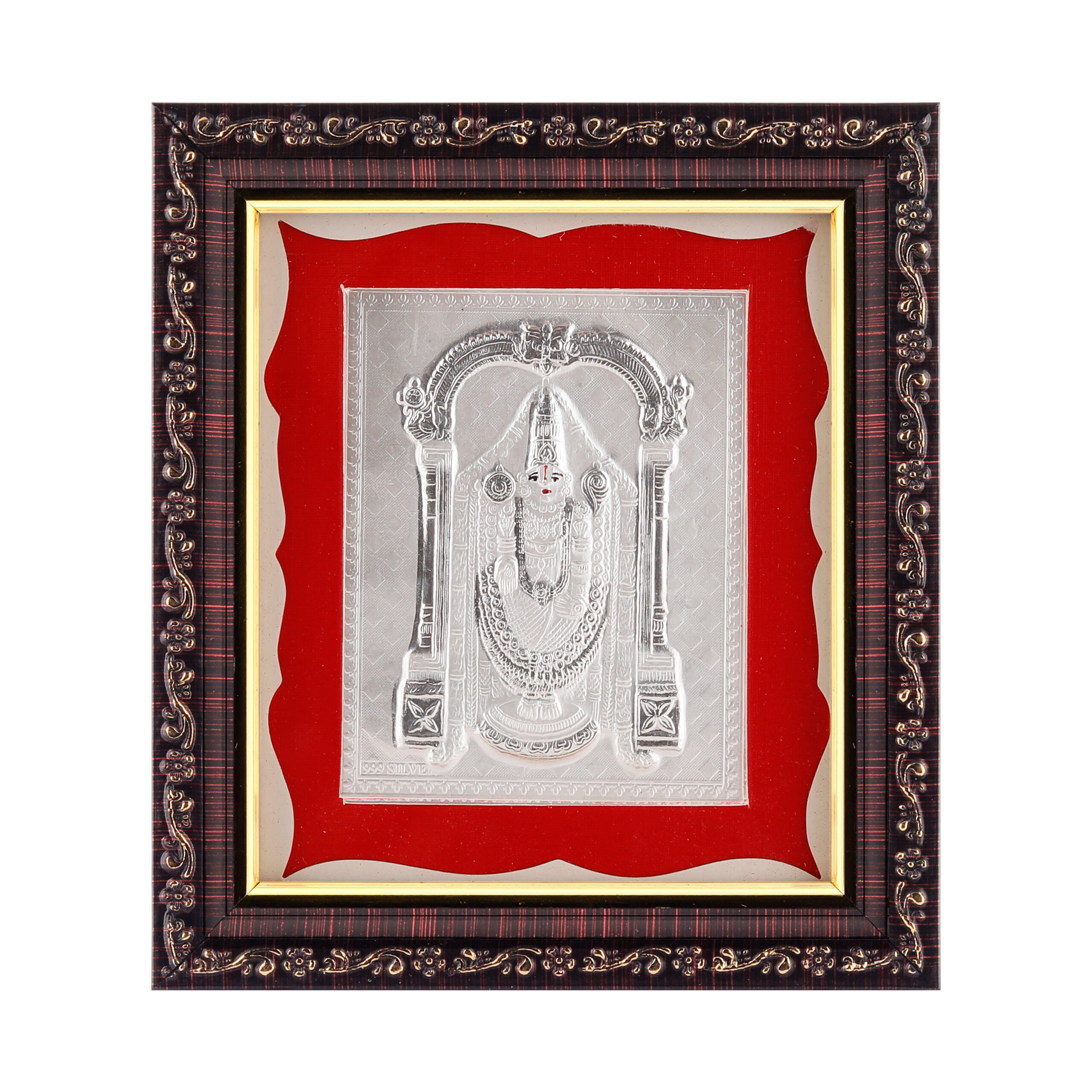 Invite the blessings of Lord Balaji into your home with this stunning embossed 999 pure silver photo, set in a classy wooden-style frame. With its 5×5.5 inch size, it’s perfect for worship spaces, elegant décor, or devotional gifting.